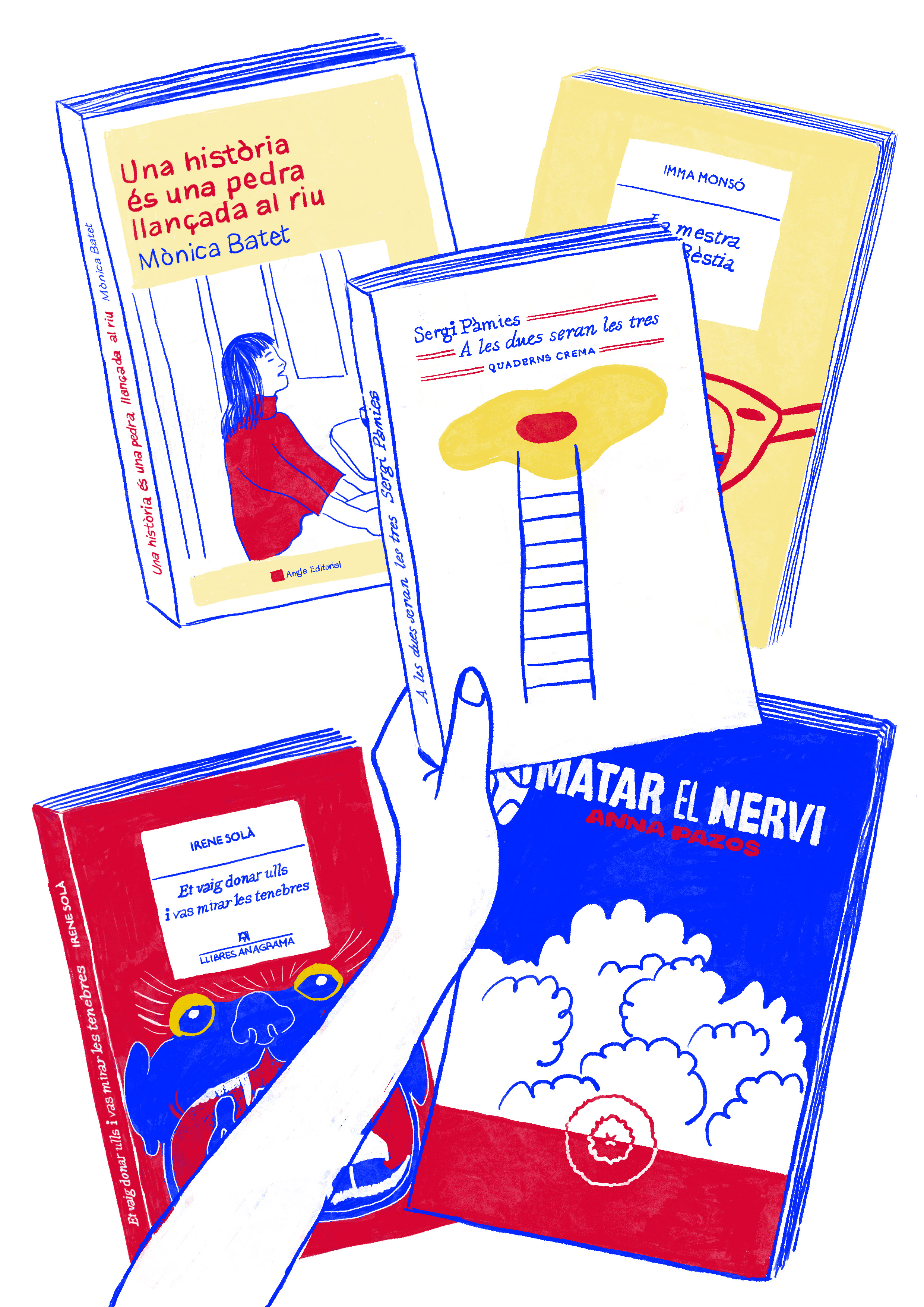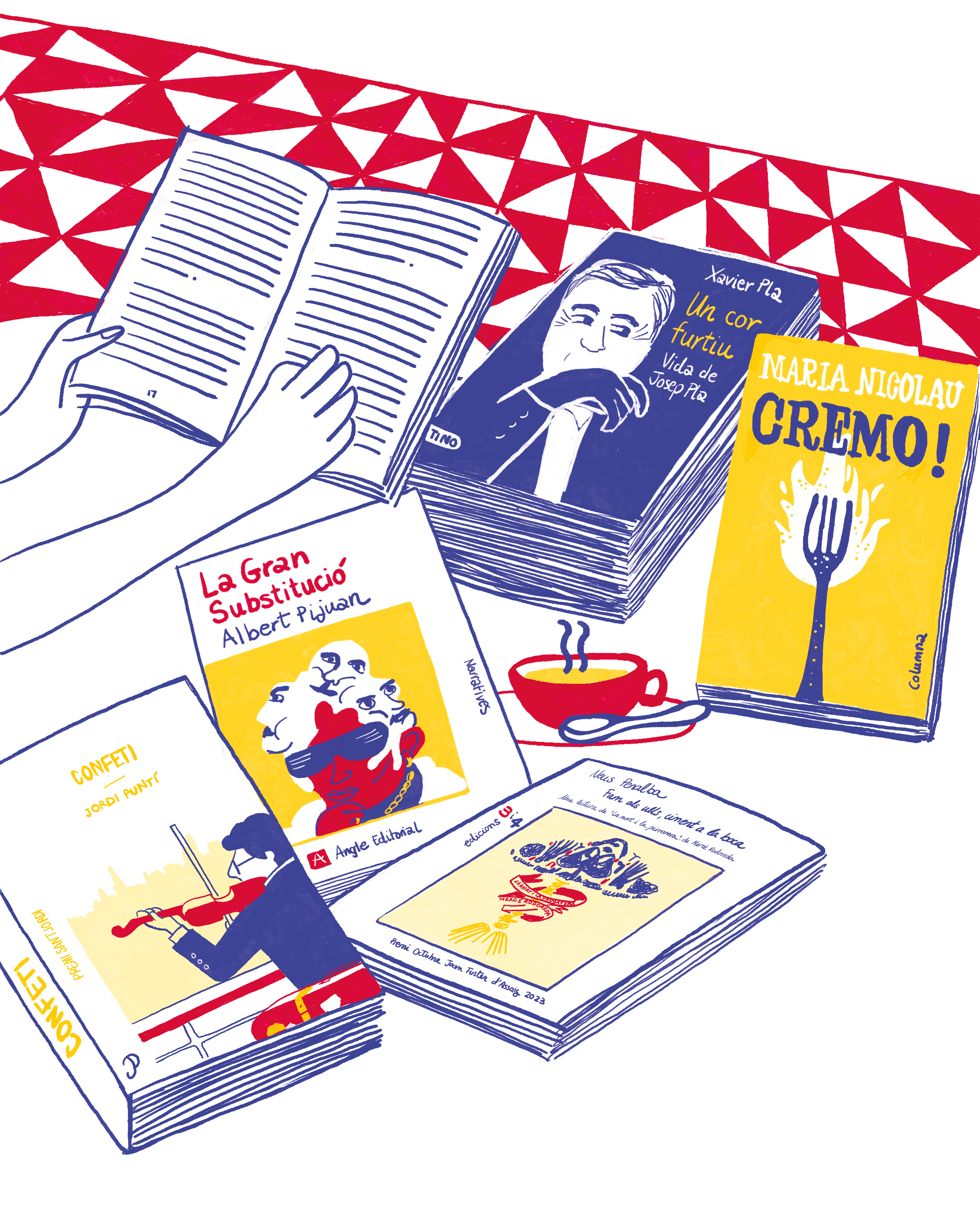 Ilustraciones para las portadillas del especial "Los mejores 30 libros del año" de 2023 y 2024. Suplemento "Quadern" de El País. En las portadillas ilustré los 5 libros más valorados del año simplificándolos a 3 colores.