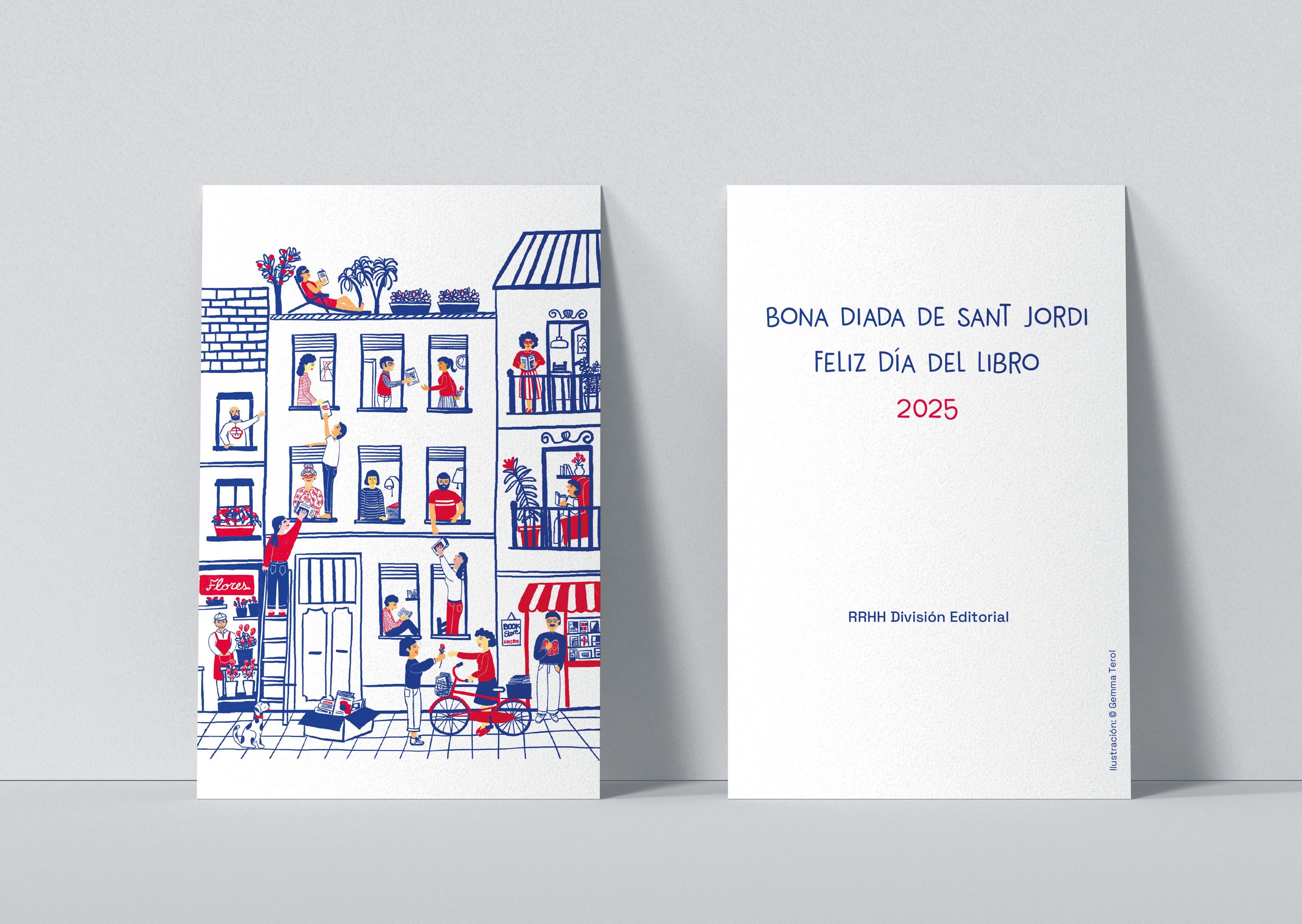 Postal para felicitar el día de Sant Jordi a los trabajadores de la editorial Planeta de Barcelona, Madrid y Valencia. Encargo desde RRHH del grupo editorial. La idea, el libro como punto de encuentro de las personas.
